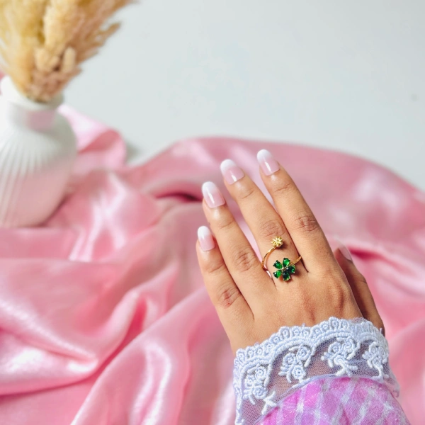Add subtle glam with this minimal emerald ring, designed in a Korean-inspired style. The adjustable band ensures a perfect, chic fit.