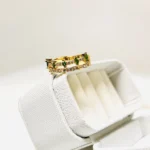 A minimal chic ring featuring shining white and emerald stones. Elegant, adjustable, and the perfect accessory for modern fashion lovers.