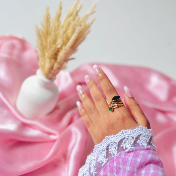 A minimal emerald ring designed with ARABIC-inspired elegance. Its adjustable fit makes it effortlessly chic and timeless.